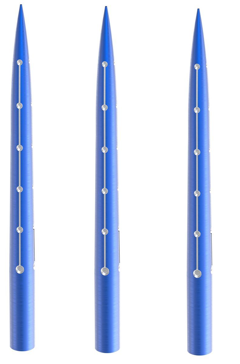 Der Azza Point ist ein auffälliger 35 mm langer blauer Tip. Dieser machined-Tip besitzt einen line-Grip, der dem Spieler zusätzliche Kontrolle über seinen Dart gibt.