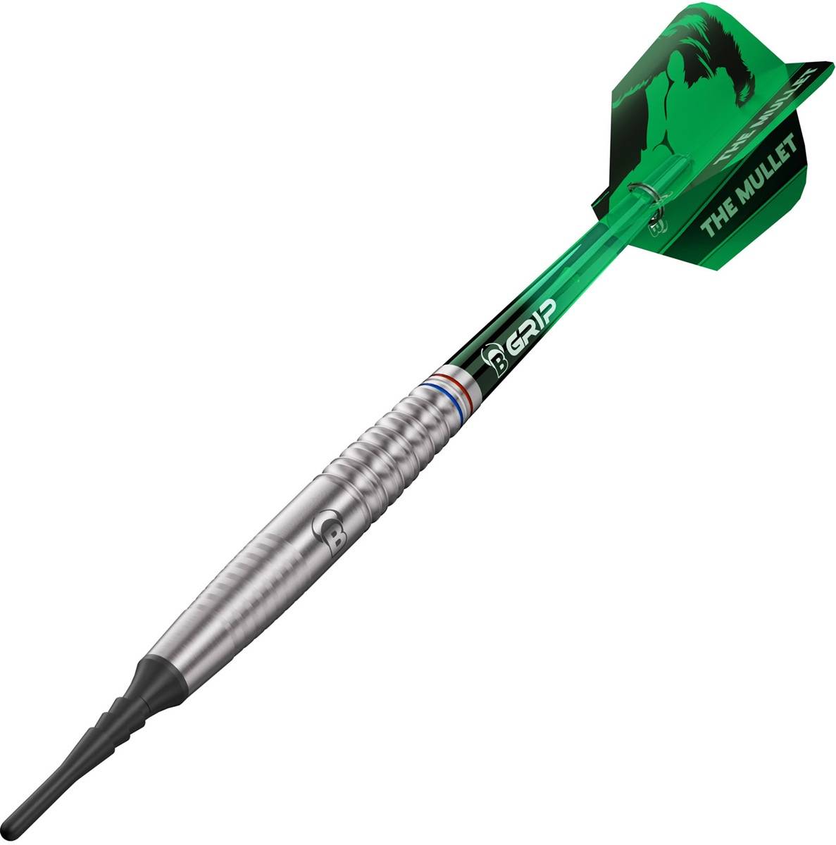 Drei farbige Ringe in den Tönen der niederländischen Flagge setzen markante Akzente und unterstreichen Dannys charakterstarke Identität. Komplettiert wird das Setup durch den grünen B-Grip 2 TTB Schaft, die langlebigen Tefo-X Shark Soft Tip Spitzen sowie den Danny Jansen B-Standard Flight mit 100?Mikron, der für Stabilität und präzise Flugbahnen sorgt.