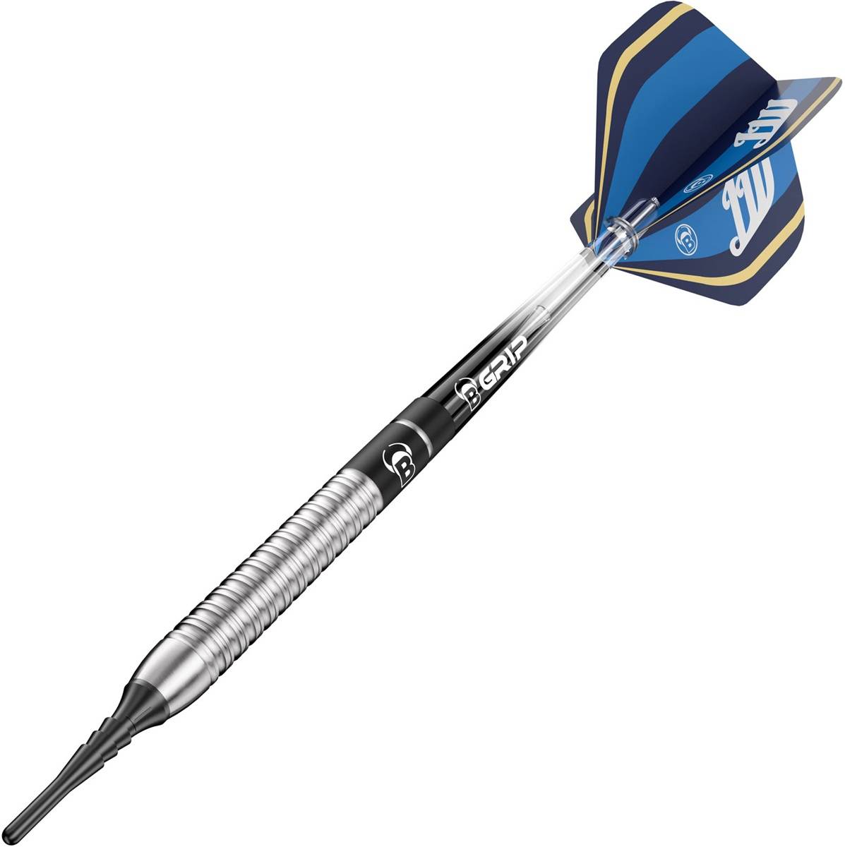 Der Leon Weber Player Soft Dart verbindet technisches Feingefühl mit einem unverwechselbaren, modernen Design. Das leicht konisch zulaufende 90 % Tungsten Barrel bietet durch den durchgehenden Doppelringgrip im mittleren Bereich ein kontrolliertes, sicheres Griffgefühl und unterstützt konstante Würfe auf hohem Niveau.