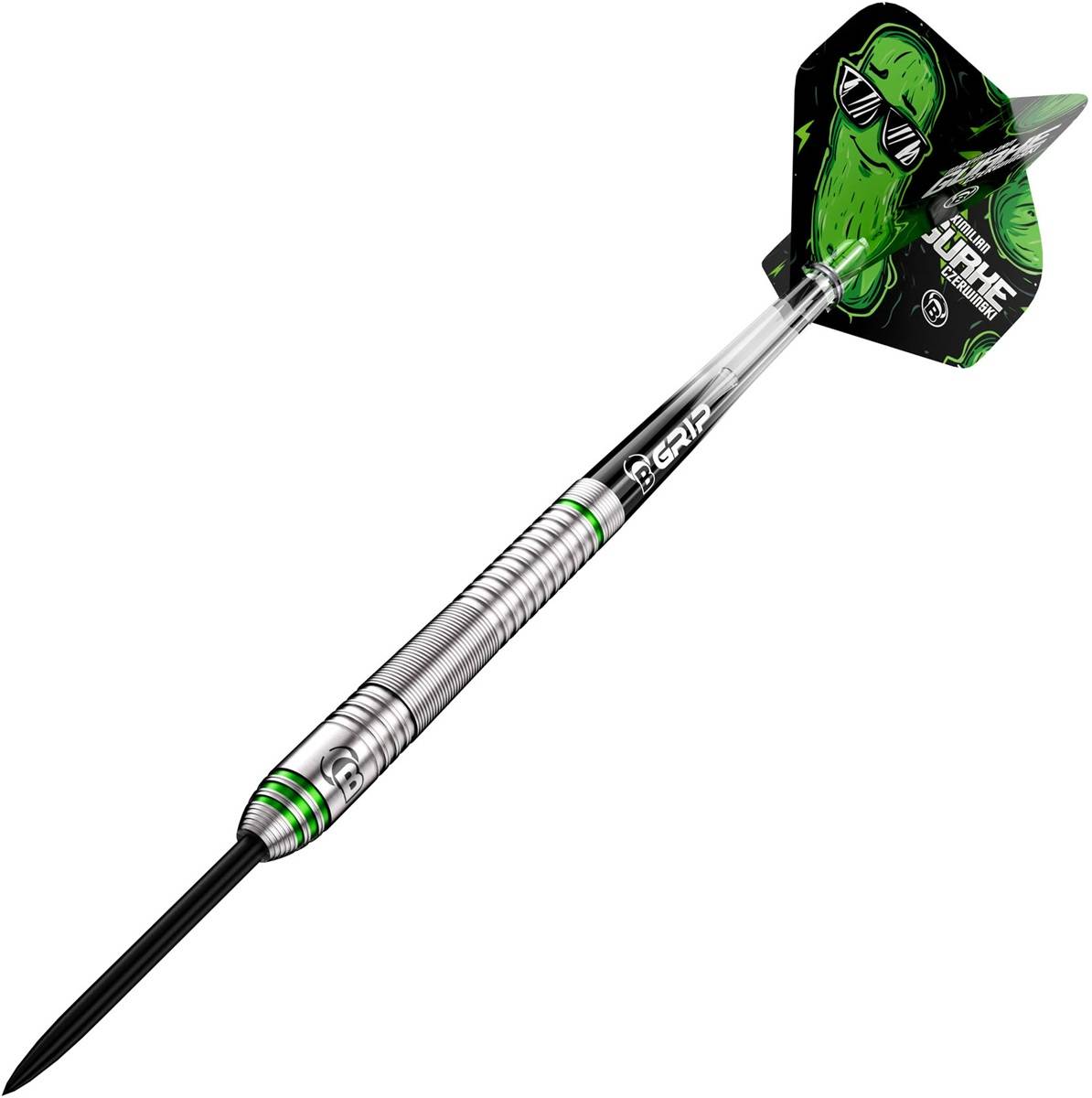 Der Max „Gurke“ Czerwinski Steel Dart steht für technische Raffinesse, durchdachtes Gripdesign und einen unverwechselbaren Look. Entwickelt für Spieler, die Wert auf Kontrolle, Komfort und Persönlichkeit legen, verbindet dieser Dart Performance mit individuellem Stil.