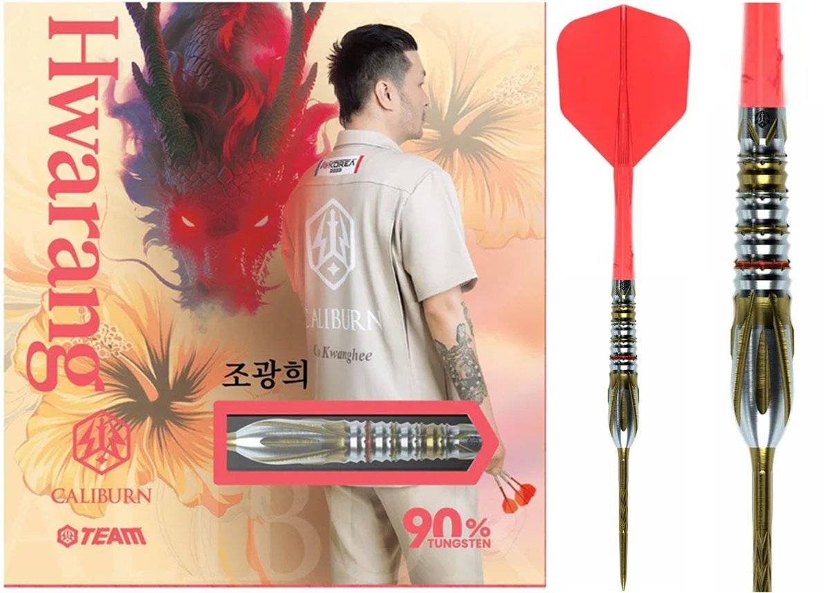 Die Caliburn Players Hwarang Darts vereinen technische Präzision mit einem ausdrucksstarken Design. Gefertigt aus 90 % Tungsten, bieten sie ein schlankes Barrelprofil bei gleichzeitig hoher Stabilität – perfekt für ambitionierte Dartspieler, die Wert auf konstante Würfe und zuverlässige Kontrolle legen.