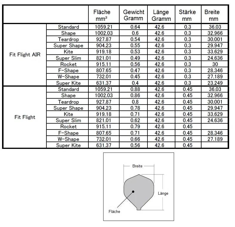 Die Bauart dieser Flights sorgt für einen perfekten 90 Grad Winkel der Flügel, wodurch die Flugbahn optimiert wird.