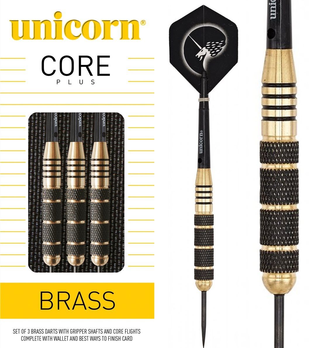 Unicorn Core Plus Brass ist hergestellt aus einem präzisen Messing Barrelmit kompakten Abmessungen. Die Darts sind in 21g, 23g, 25g und 27g erhältlich.Lieferung mit Unicorn Gripper 2 Schäften und Unicorn Flightsim Unicorn Dart Wallet.