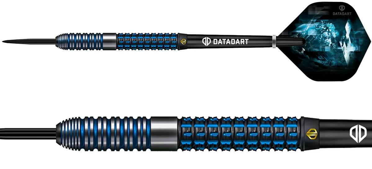 Optisch setzen sich die Parallax Darts durch ihre markanten blauen Electro-Infills ab, die einen starken Kontrast zur schwarzen, beschichteten Oberfläche bilden. Das sauber lasergravierte Datadart-Logo rundet das hochwertige Gesamtbild ab.