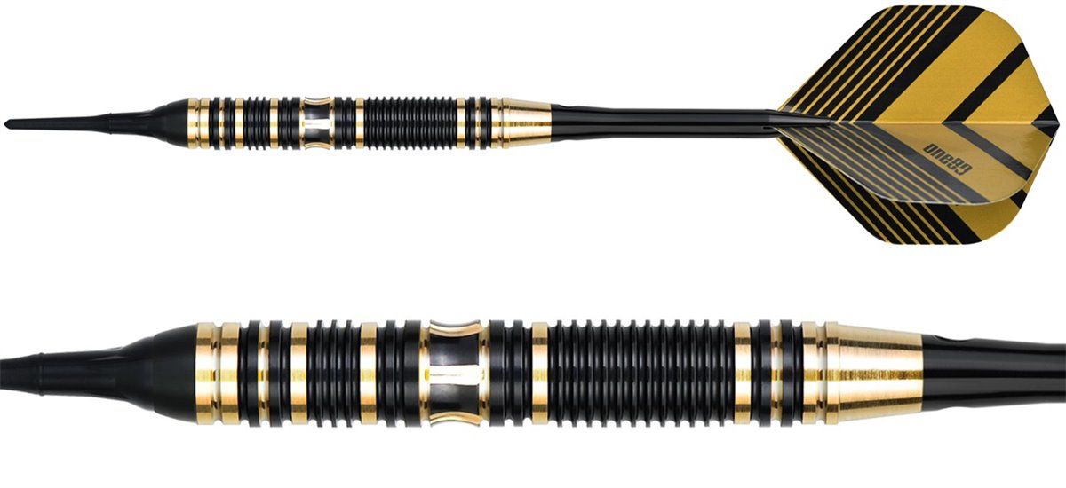 ONE80 Softdarts von ONE80 mit Messing Barrel, Barrelgewicht = 18 Gramm. Inkl. Set-Up (Flight, Spitze und Shaft) ca. 20 Gramm.