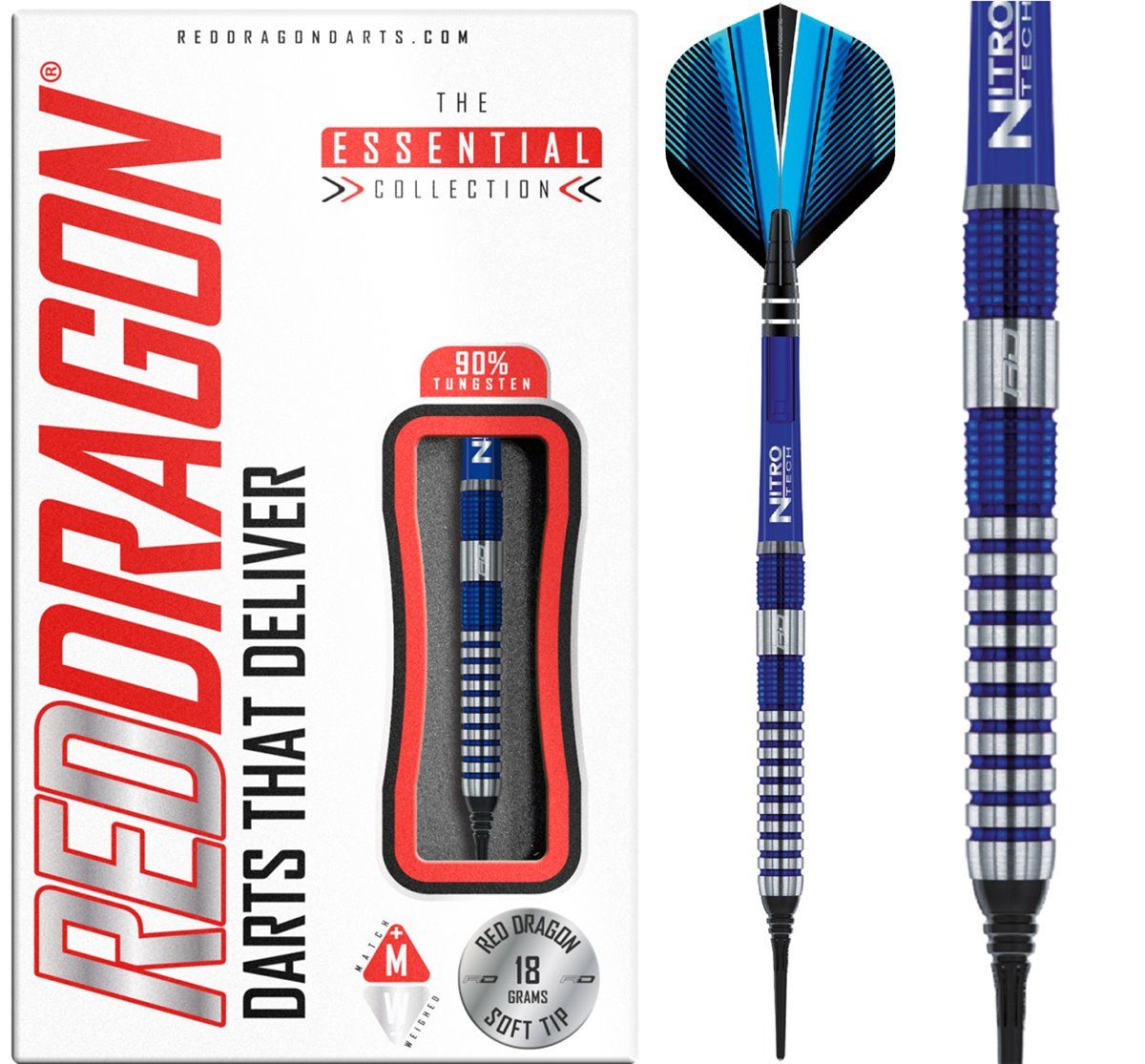 Die Softdarts aus dem Hause Reddragon haben einen 90% Tungsten Barrel. Die Darts haben ein Barrelgewicht von 18 Gramm und kommen mit Set-Up (Flight/Shaft) auf 20 Gramm Gesamtgewicht.
