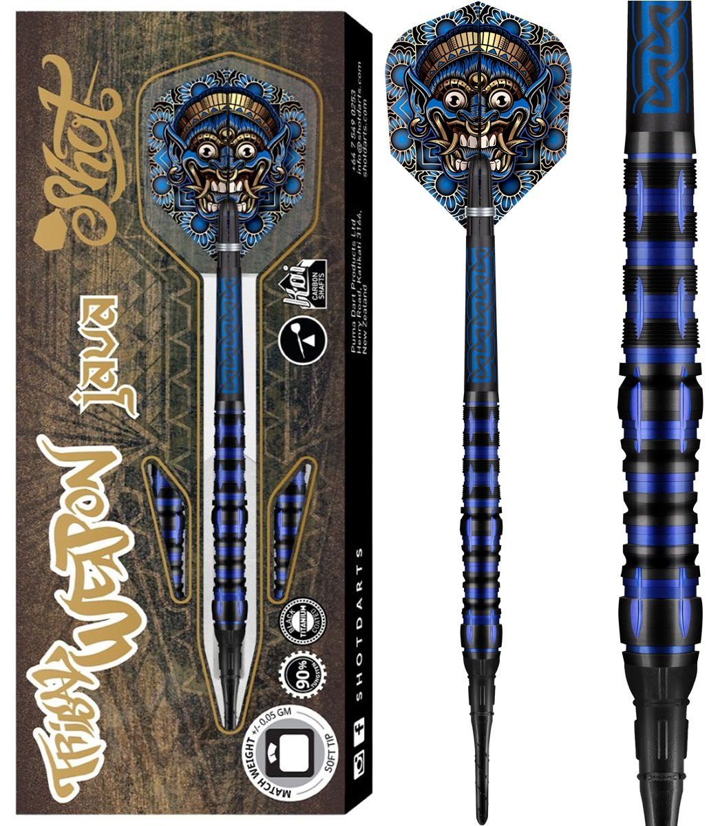 SHOT! Tribal Weapon Java Softdarts mit einem 90% Tungsten Barrel.