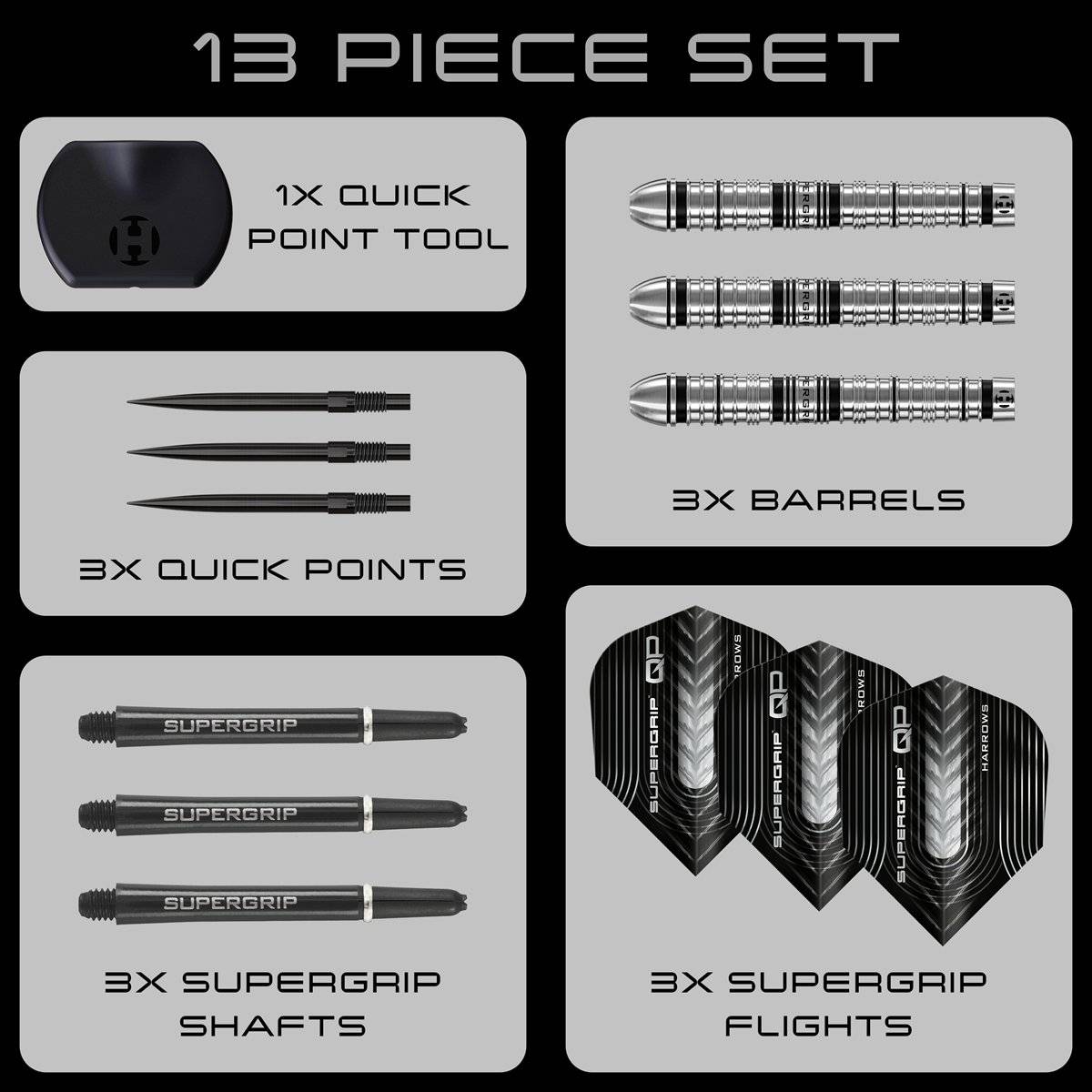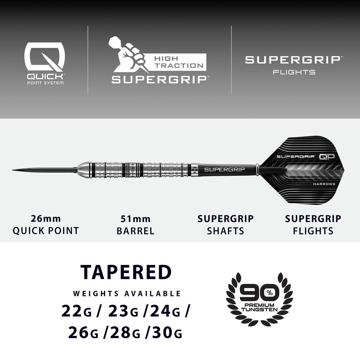 Produktinformationen "Harrows Supergrip QP Tapered 90% Quick Points Steeldarts 22/23/24/26/28/30 Gramm Steeldarts"