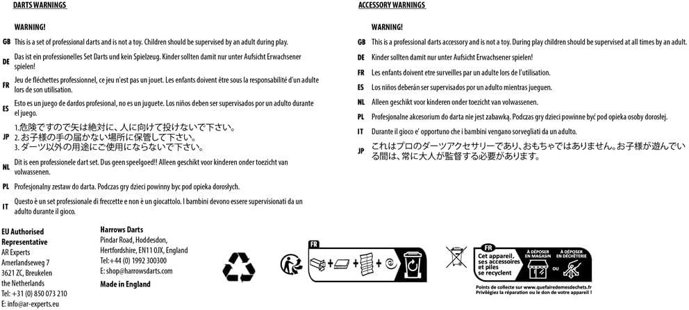 Achtung! Dart ist ein Sport für Erwachsene und kein Spielzeug. Für Kinder ist es gefährlich und darf nur unter Aufsicht gespielt werden. Außerhalb der Reichweite von kleinen Kindern lagern, Kleinteile stellen eine Erstickungsgefahr dar.