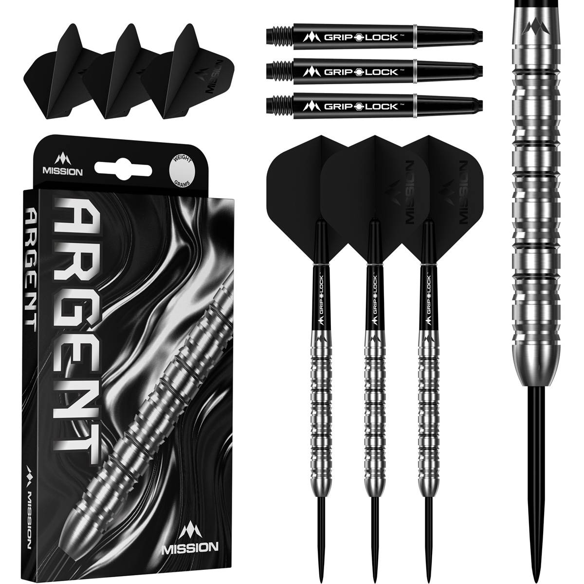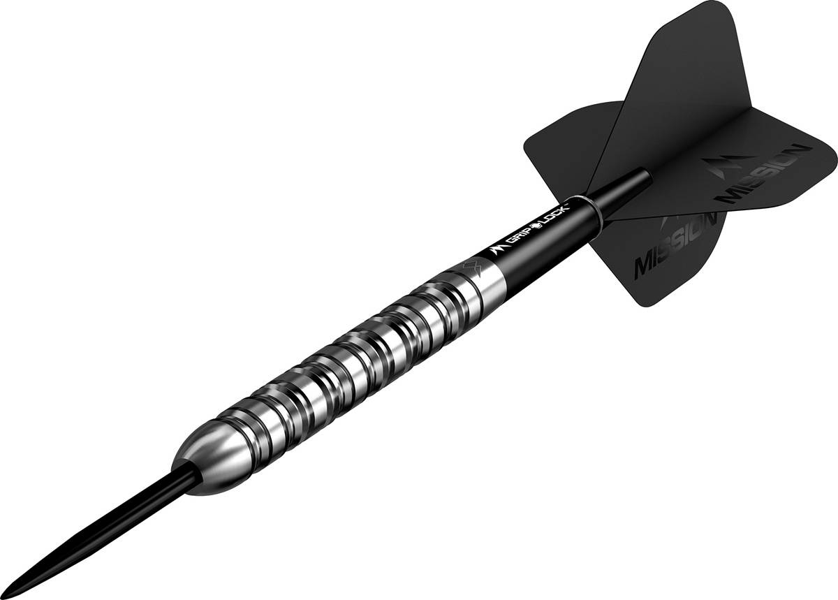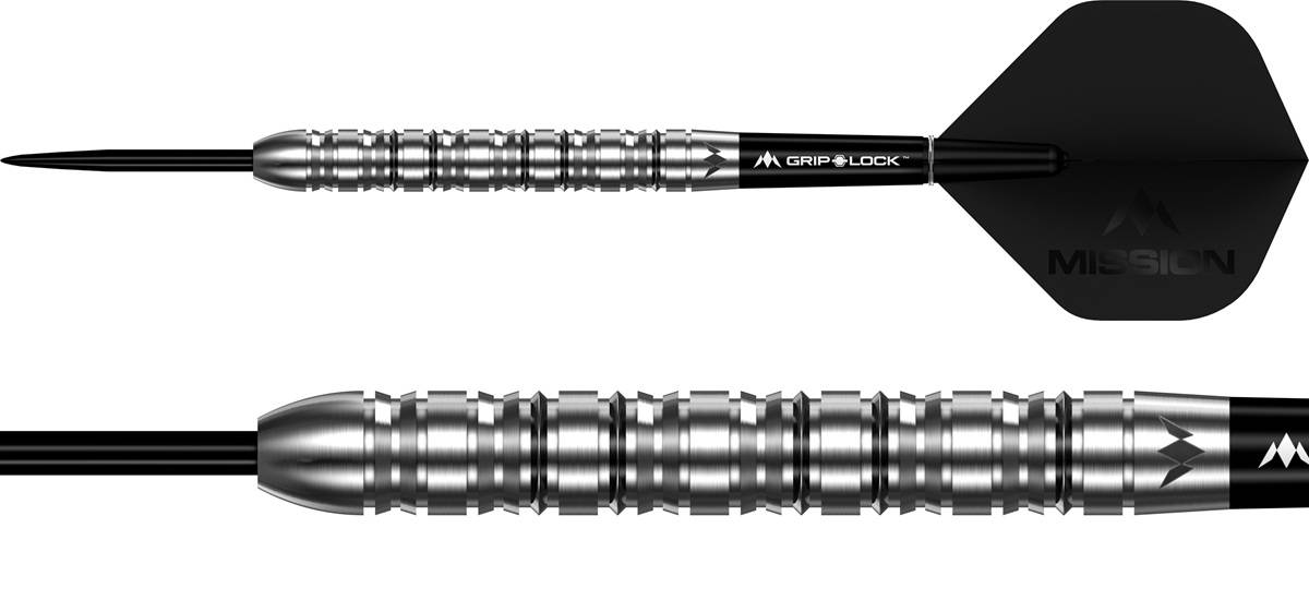 Durch die Kombination aus Mission Grip Lock Shafts (schwarz) und den passenden Mission Argent Flights entsteht ein harmonisches Setup, das stabil, kontrolliert und präzise fliegt.