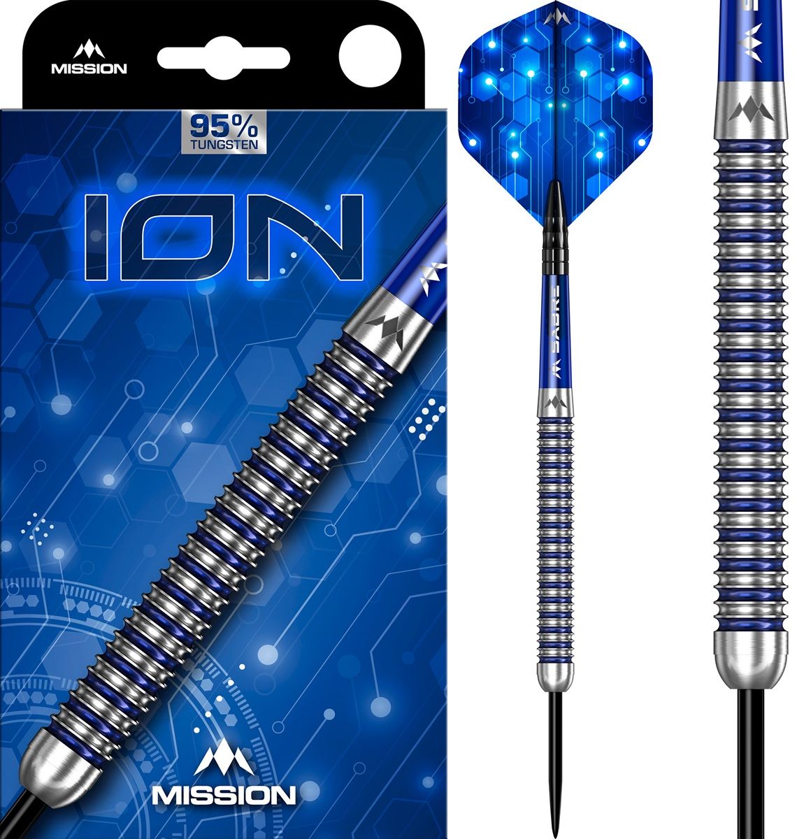 Produktinformationen "Mission ION Blue & Silver 95% Steeldarts 22/24/26/28/30 Gramm Steeldarts"