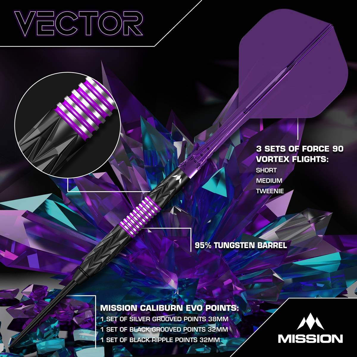 Produktinformationen "Mission Vector Darts Black PVD & Purple Electro 95% Steeldarts 22/24 Gramm Steeldarts"