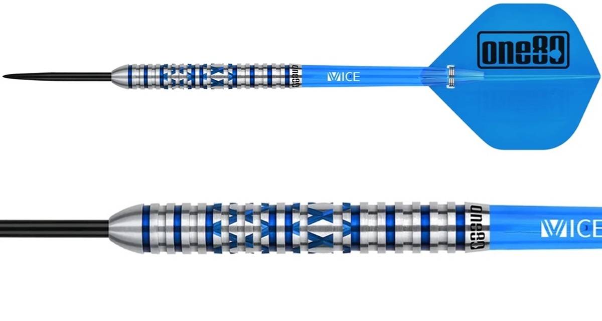 Die Steeldarts von One80 haben einen 90% Tungsten Barrel und wiegen 20 Gramm, inkl. Flight und Shaft ca. 21,5 Gramm.