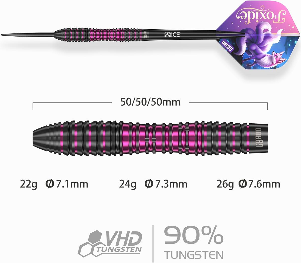 Angebot: ONE80 Foxide F3 90% Steeldarts 22/24/26 Gramm