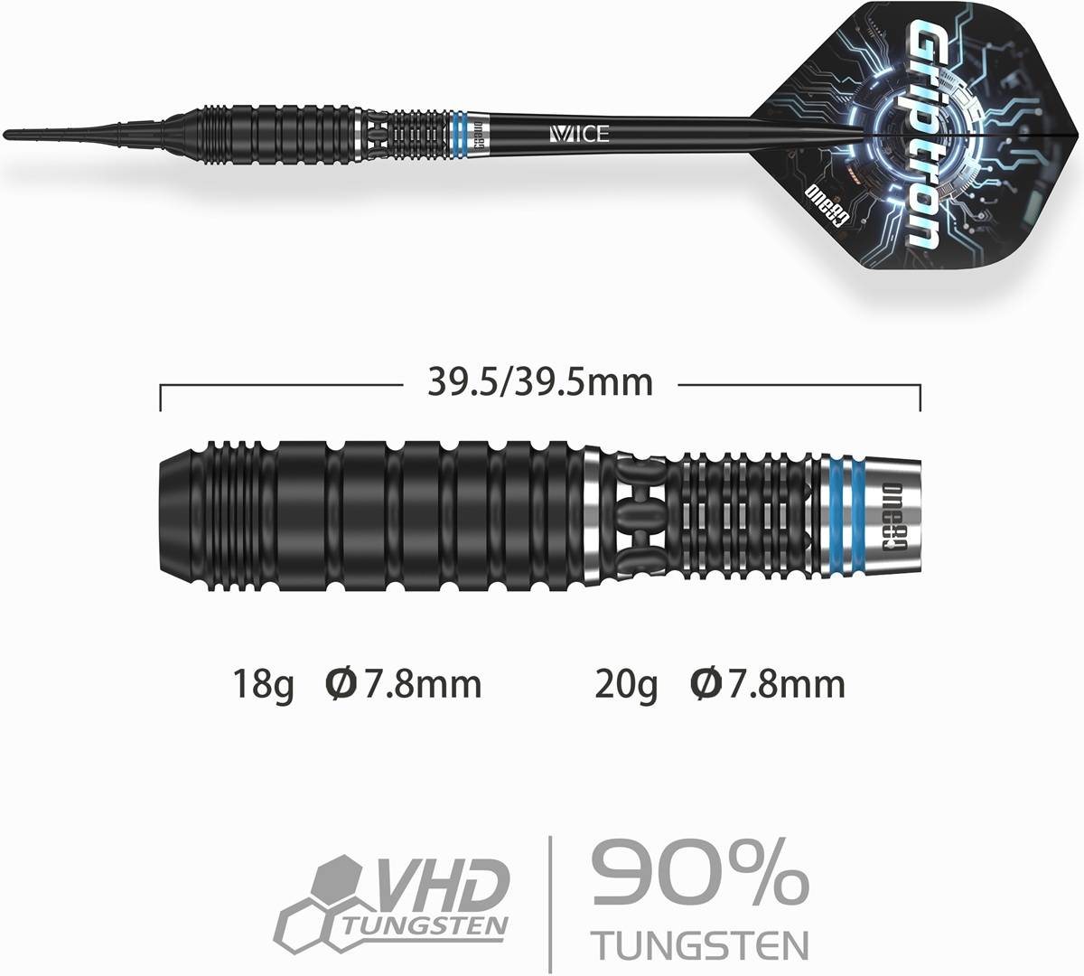 Angebot: ONE80 Griptron GT3 90% Softdarts 18/20 Gramm