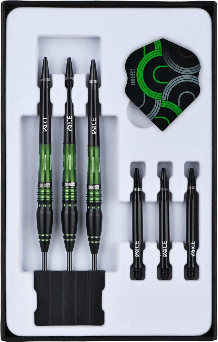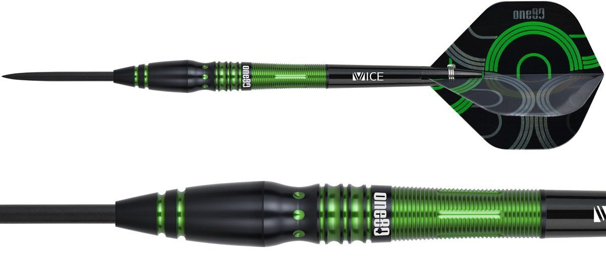 Steeldartpfeile aus dem Hause ONE80 mit 90% Tungsten Anteil. Gewicht= Barrelgewicht.