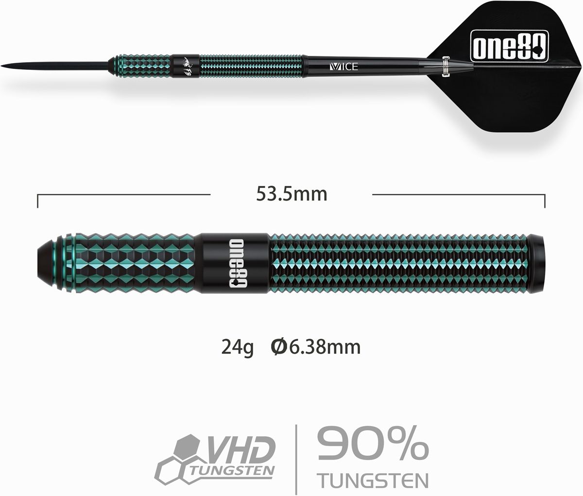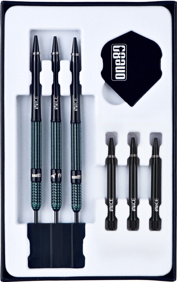 Steeldartpfeile aus dem Hause ONE80 mit 90% Tungsten Anteil. Gewicht= Barrelgewicht.