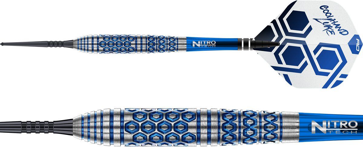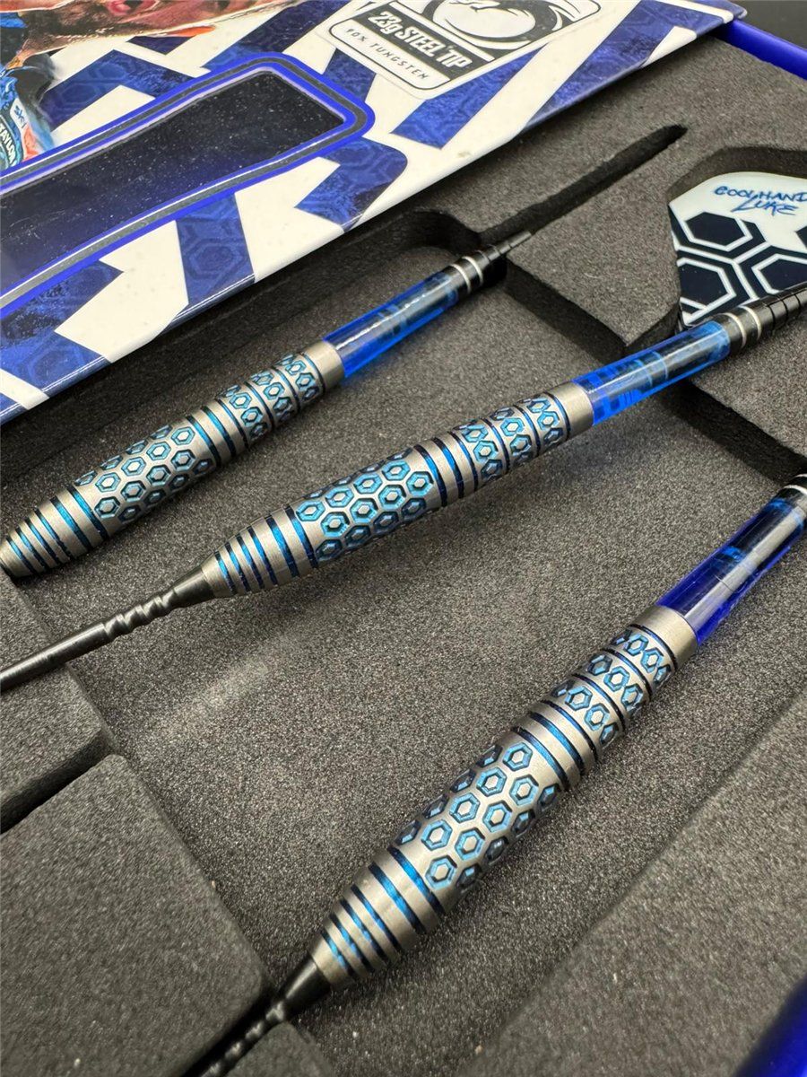 Die 90 % Tungsten Torpedo-Barrels sorgen für optimale Balance und ein konstant stabiles Wurfverhalten. Die fein gearbeitete Hex-Fräsung garantiert sicheren Grip und maximale Kontrolle, während die elektro-blaue Veredelung zusammen mit silbernen Akzenten für einen unverwechselbaren Look sorgt.
