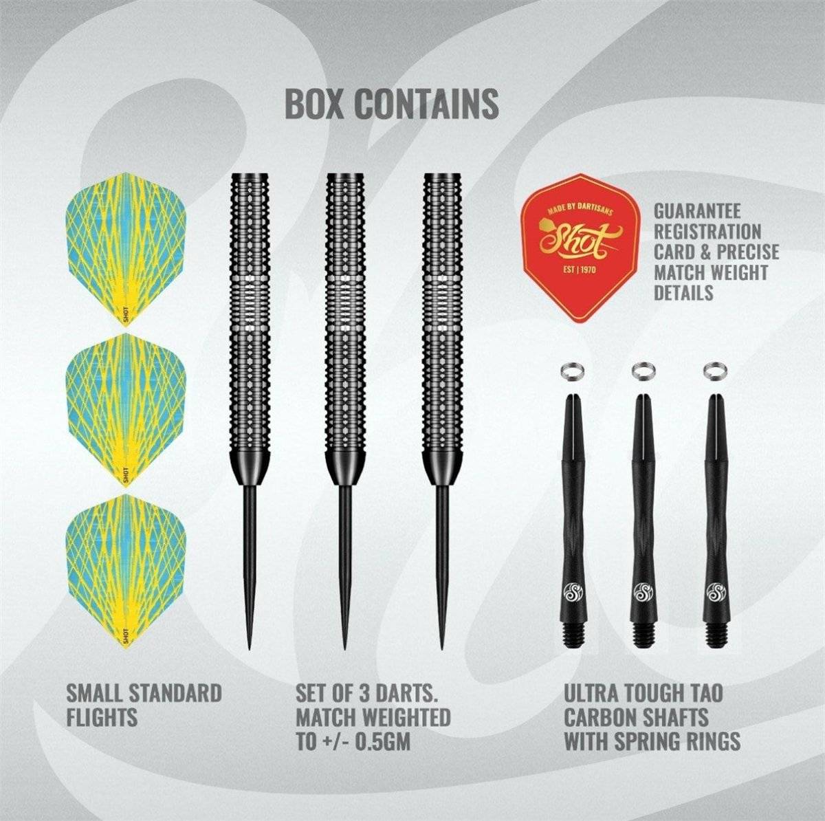 Du willst dein Dartspiel auf ein neues Niveau bringen? Die Shot Rowby-John Rodriguez Baha Darts wurden für ambitionierte Spieler entwickelt, die Wert auf Präzision, Balance und ein sicheres Griffgefühl legen. Das hochwertige Barrel aus 90 % Tungsten sorgt für eine schlanke Form, hohe Langlebigkeit und konstante Wurfeigenschaften – ideal für konzentriertes Spiel auf Wettkampfniveau.