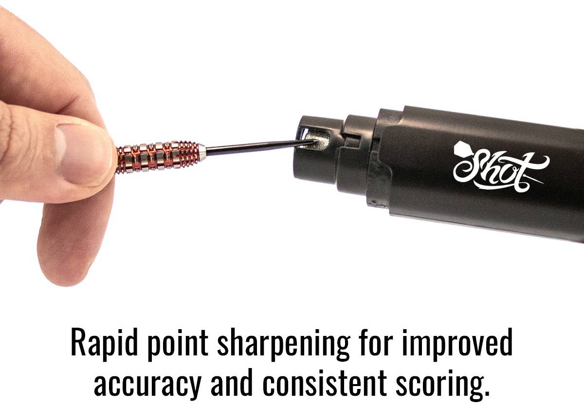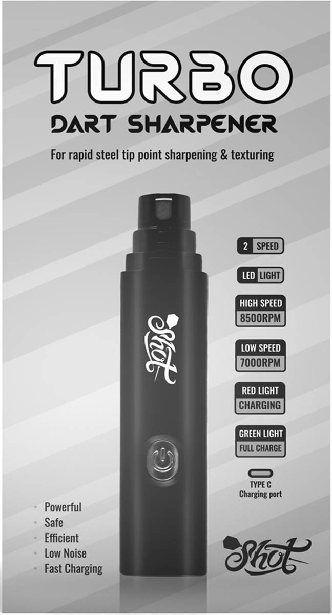 Mit dem Shot Turbo Dart Sharpener kannst du deine Dartspitzen ganz einfach nachschleifen, pflegen und reparieren – damit deine Ausrüstung immer optimal geschliffen ist und du konstant gute Würfe erzielst.