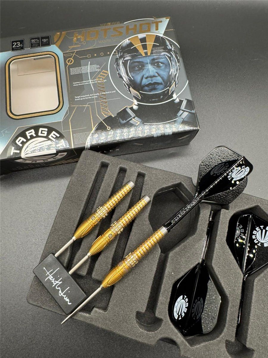 Die Target Prime Series HOTSHOT GEN 3 Darts, entwickelt mit Harith Lim, verbinden futuristisches Design mit maximaler Kontrolle. Inspiriert von einem mechanischen Finger („Goldfinger“) bietet das Barrel eine einzigartige Struktur für präzise und wiederholbare Würfe.