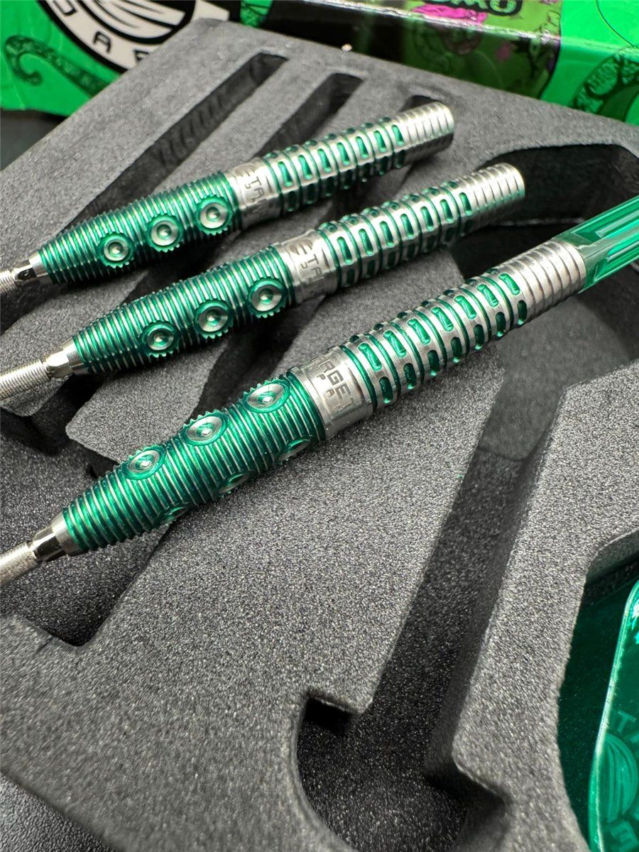 Das auffällige Electro Green Finish verleiht dem Dart einen einzigartigen Look, der auf dem Board sofort ins Auge fällt.