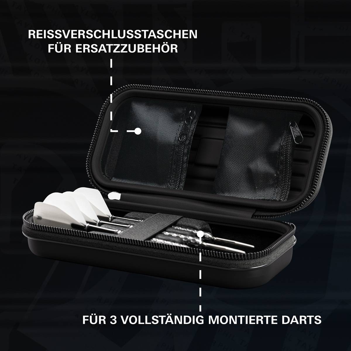 Einlage: Das Case ist mit einer Samteinalge ausgestattet für den perfekten Schutz der Darts.