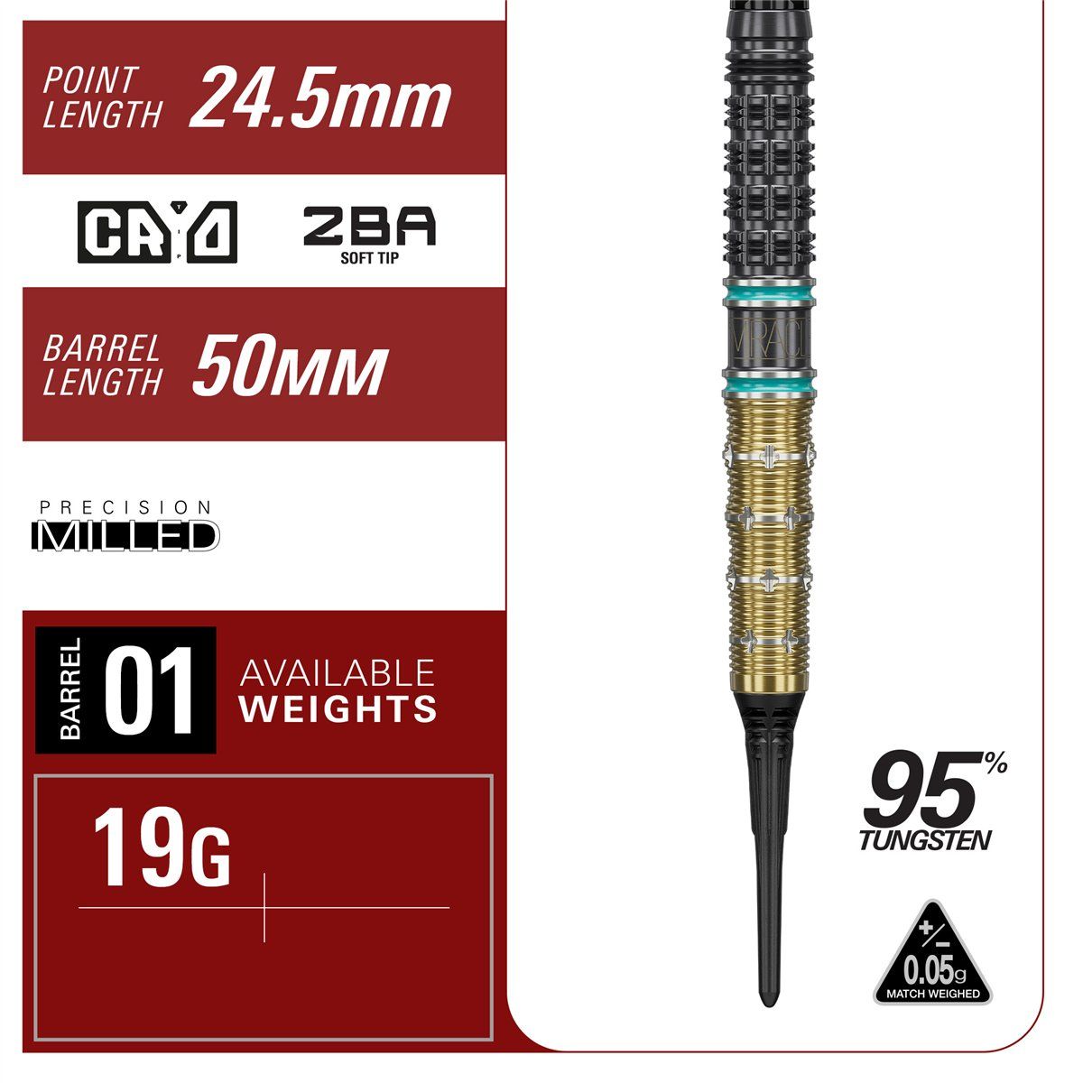 Überarbeitete Gewichtsoptionen (statt zuvor 23 g / 25 g) ermöglichen eine feinere Abstimmung von Balance und Spielgefühl – von präziser Kontrolle bis hin zu einem satteren, stabileren Wurfverhalten.