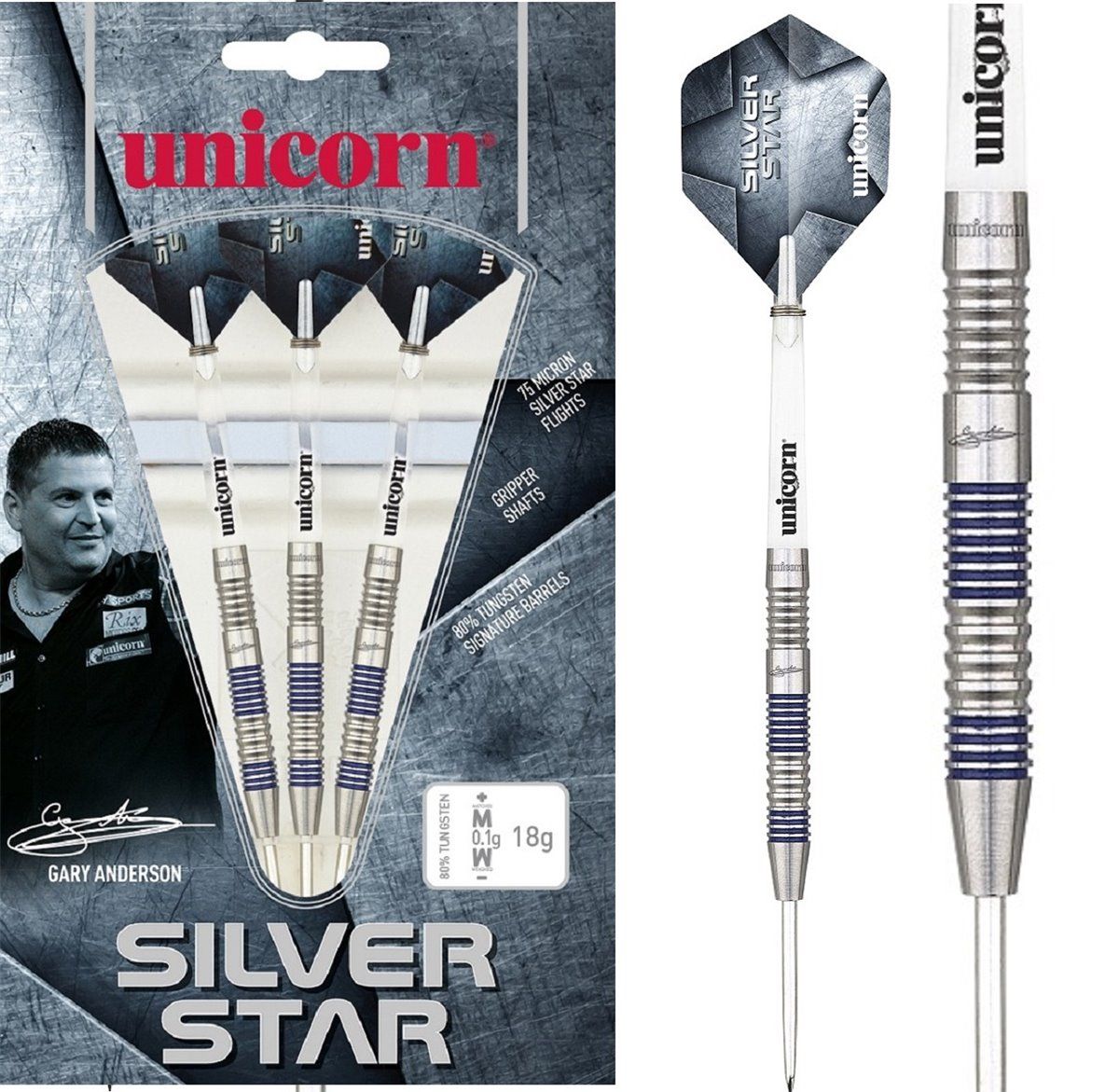 Unicorn Silver Star Gary Anderson. Gefertigt in hoher 80% Natural Tungsten Qualität.<?xml:namespace prefix = "o" ns = "urn:schemas-microsoft-com:office:office" />