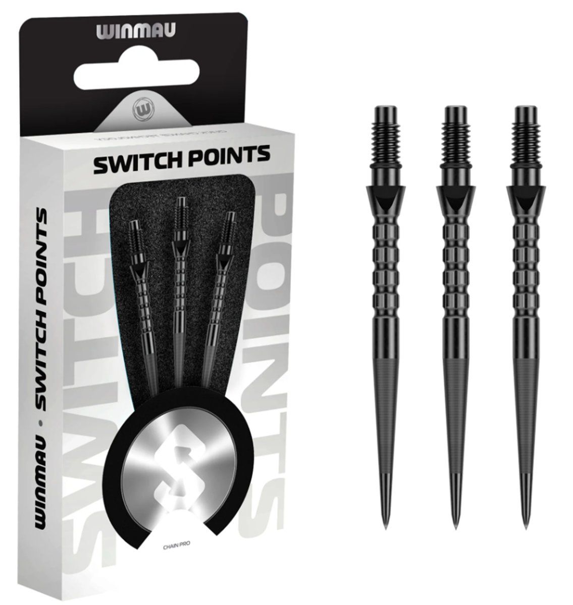 Produktinformationen "Winmau Switch Points Chain 26/30/40 mm Silber/Schwarz Wechselspitzen"