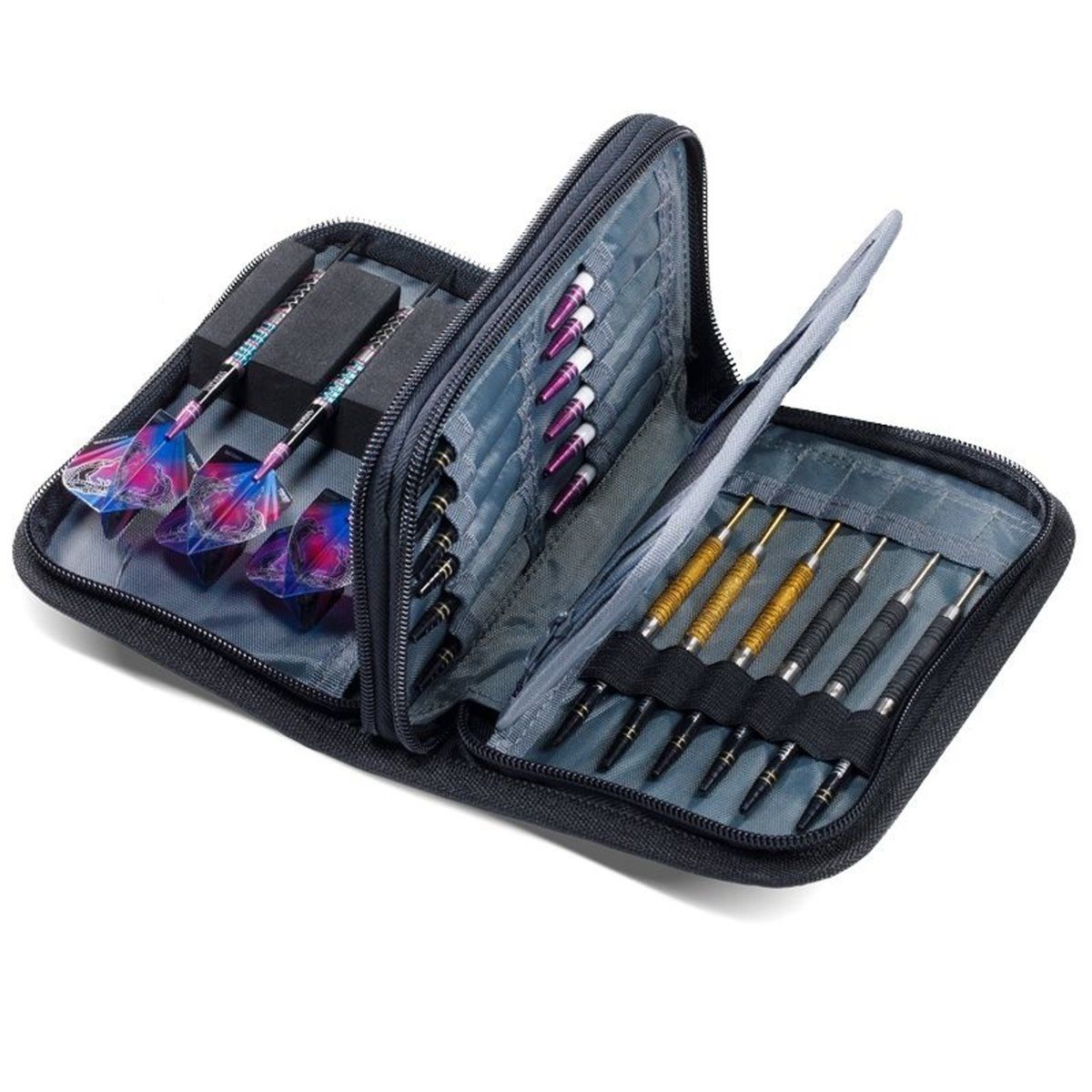 Das Case hat Platz für drei Set Darts. Ein Set kann sogar mit den Flights montiert bleiben.