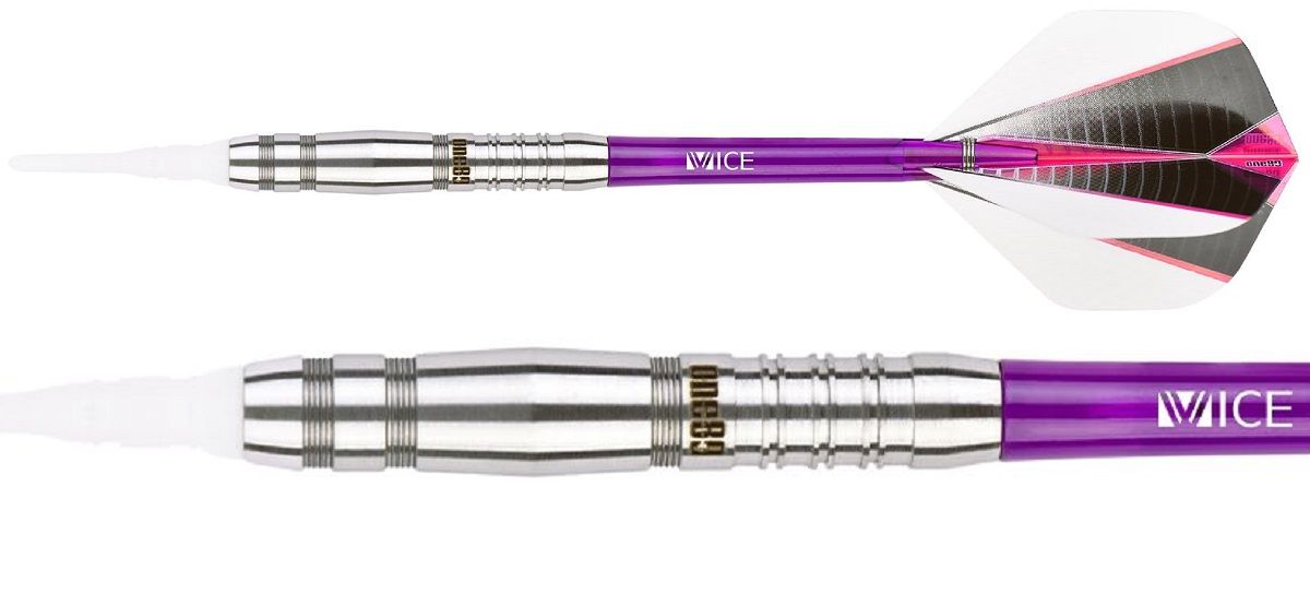 ONE80 Softdarts von ONE80 mit 80% Tungsten Barrelgewicht = 18 Gramm. Inkl. Set-Up (Flight, Spitze und Shaft) ca. 20 Gramm.