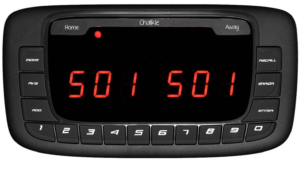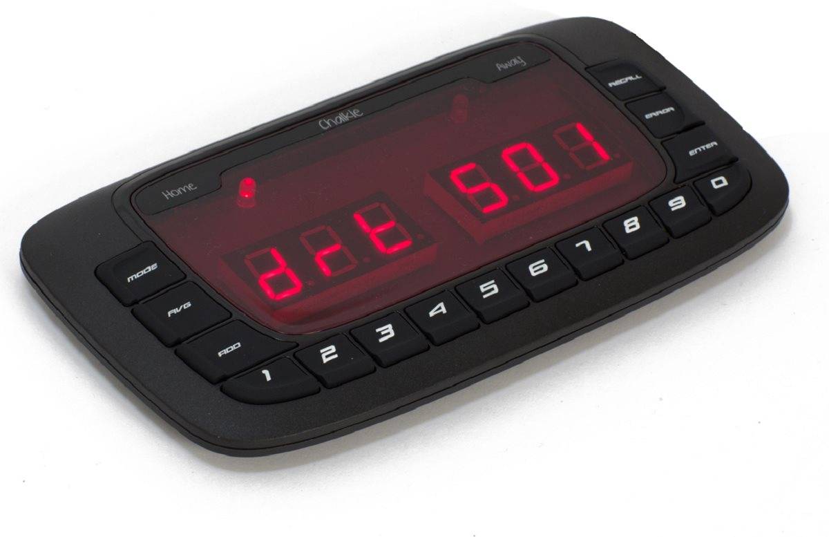 The Dartsmate Chalkie is an electronic scoreboard. The device calculates averages, tracks the scores, gives the number of sets and legs and has a training function.