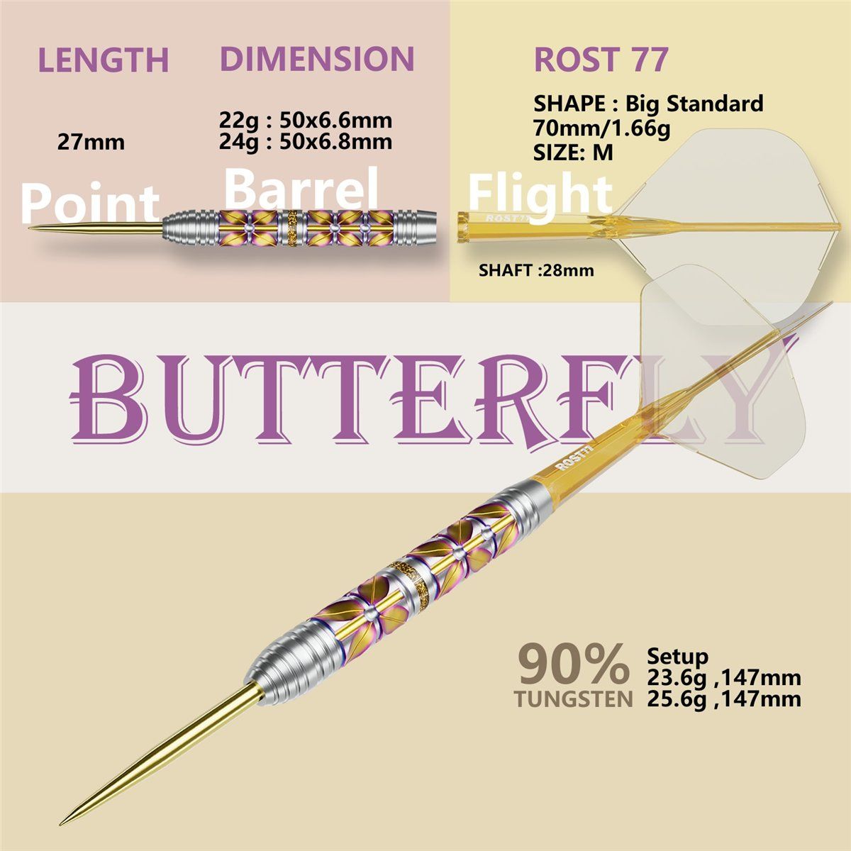 Product information "Cuesoul Forest Butterfly 90% Steeldarts 22/24 Gram Steeldarts"