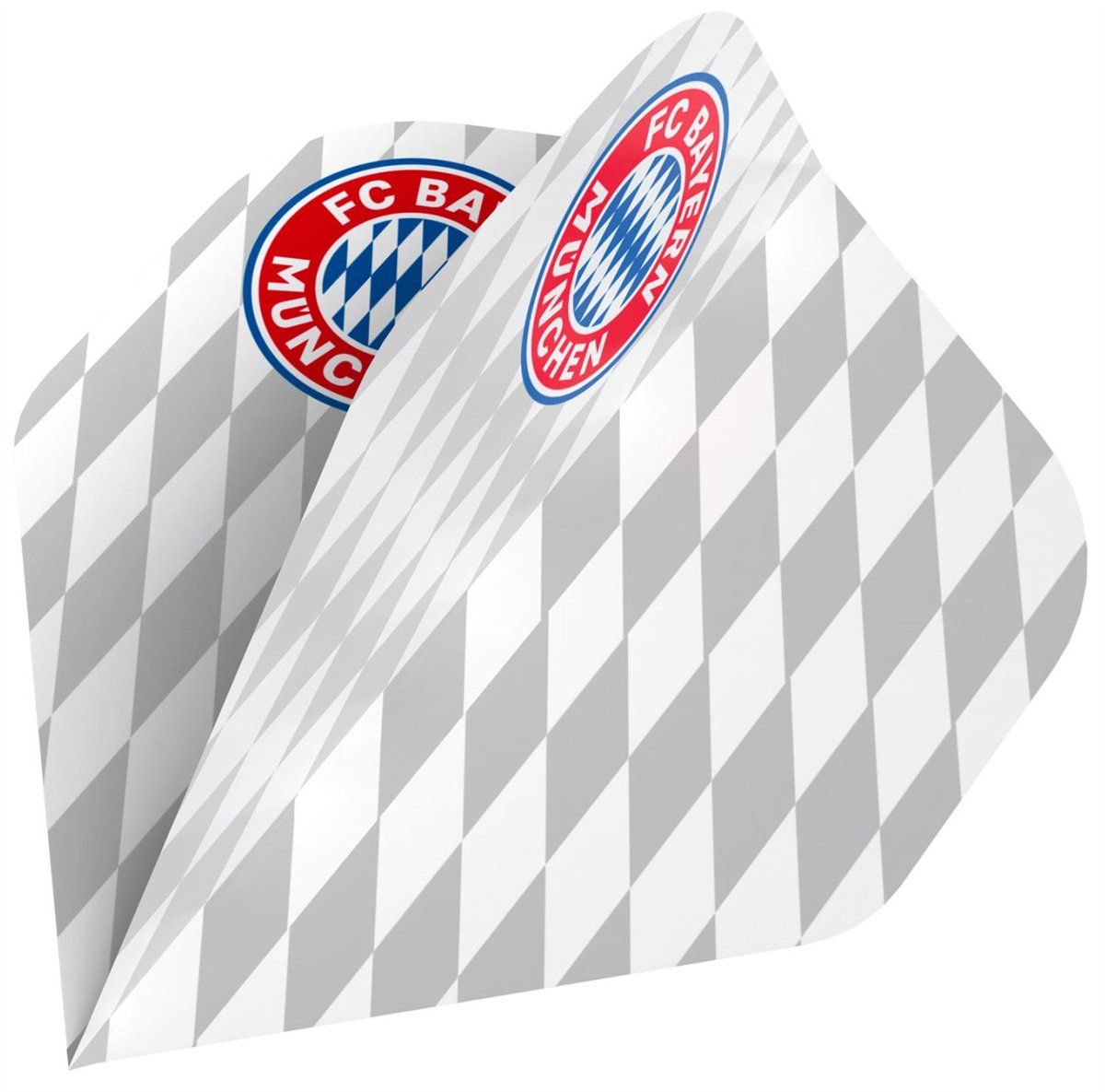The FC Bayern Munich Flight Collection features five uniquely designed dart flights that reflect the club’s identity in different styles. The collection includes classic red designs with a subtle diamond pattern, modern versions in white and grey with a Bavarian diamond look, and a striking variant with dynamic lines and bold red and white contrasts.