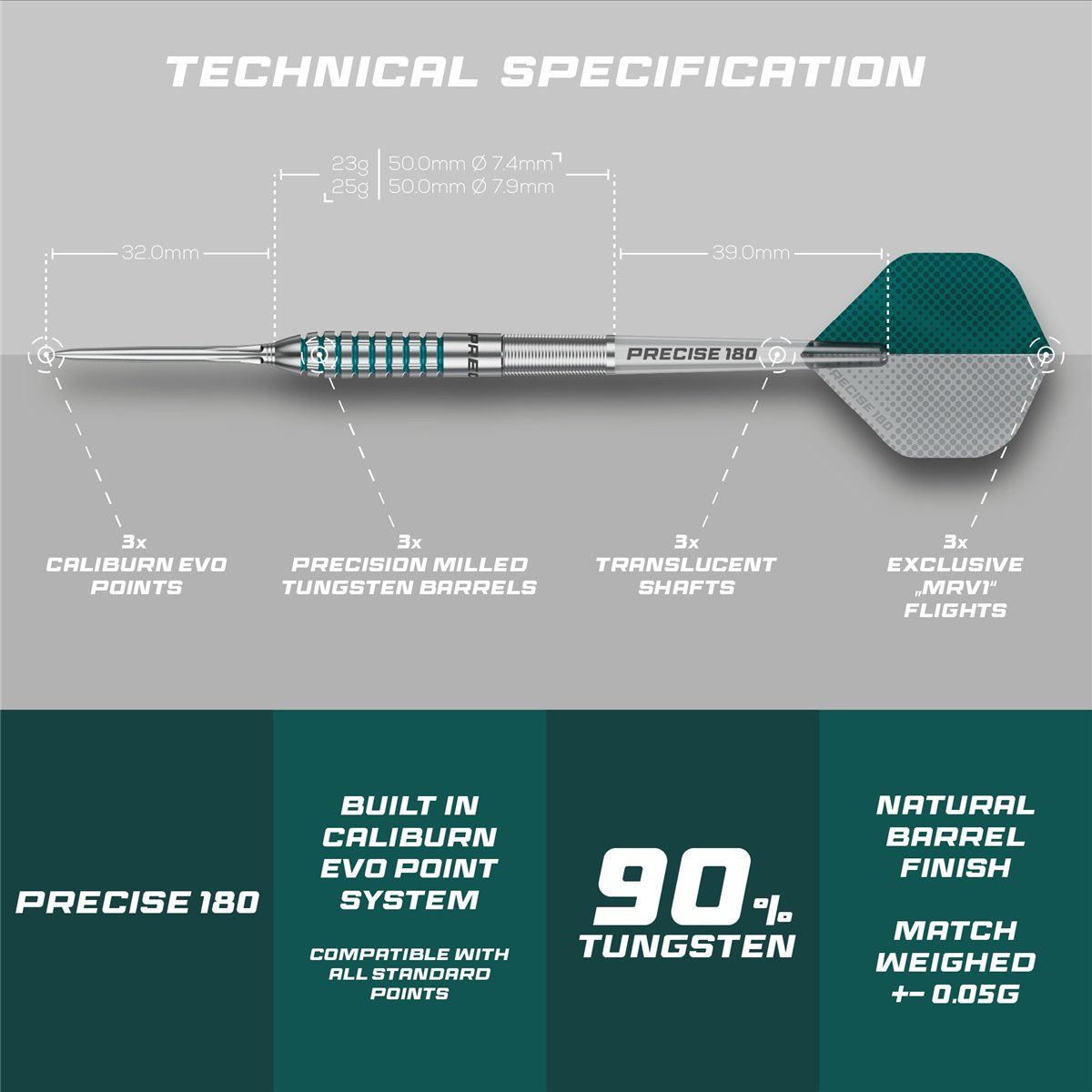 Precise180 Bela 90% Steeldarts 23/25 Gram