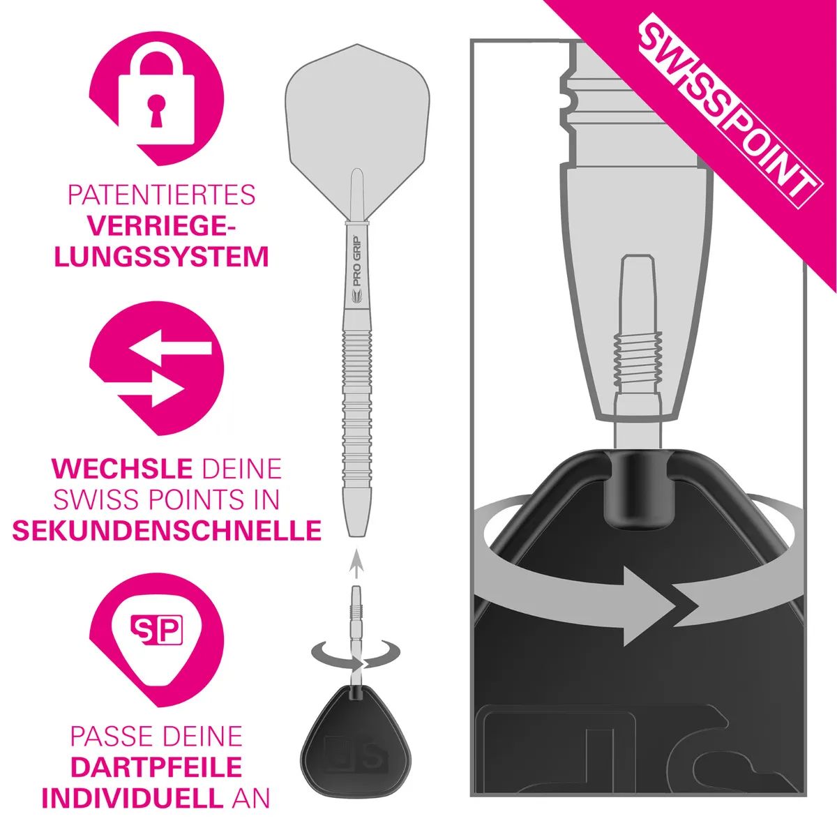 The pocket-sized Swiss Point tool is all you need to remove and install the tips. The patented locking system uses cone and thread technology to ensure that the tip does not come loose during play. Swiss Points feature a strategically designed groove that ensures that broken tips can be removed with the Swiss Point tool.