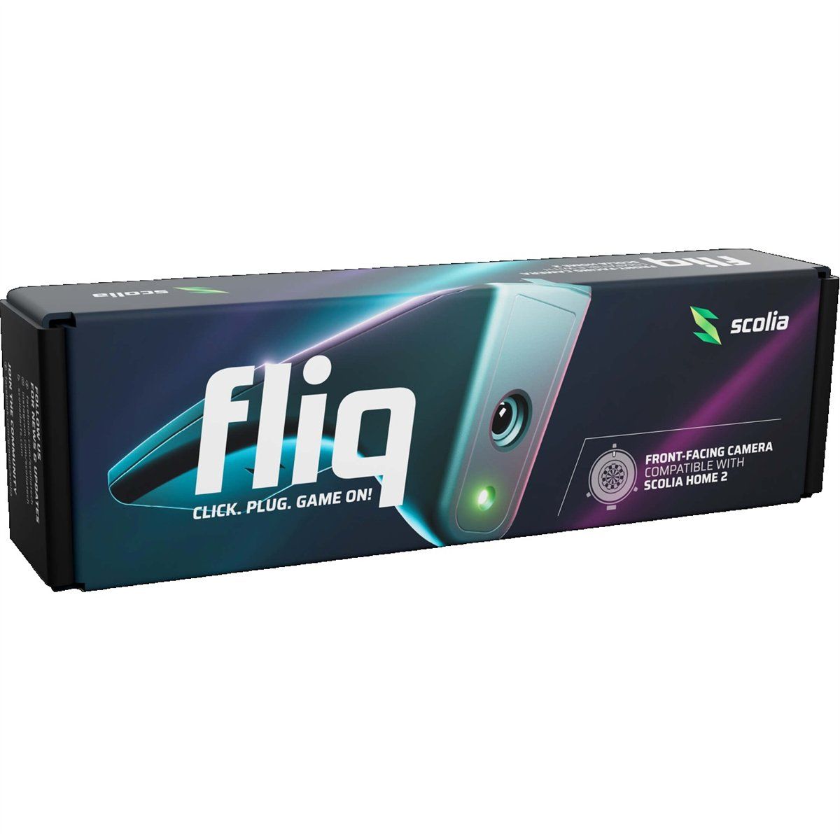 Enthalten ist die Scolia Fliq Kamera. Abgebildete Dekoartikel wie das Scolia Home 2 oder ein Dartboard sind nicht Bestandteil des Lieferumfangs.
