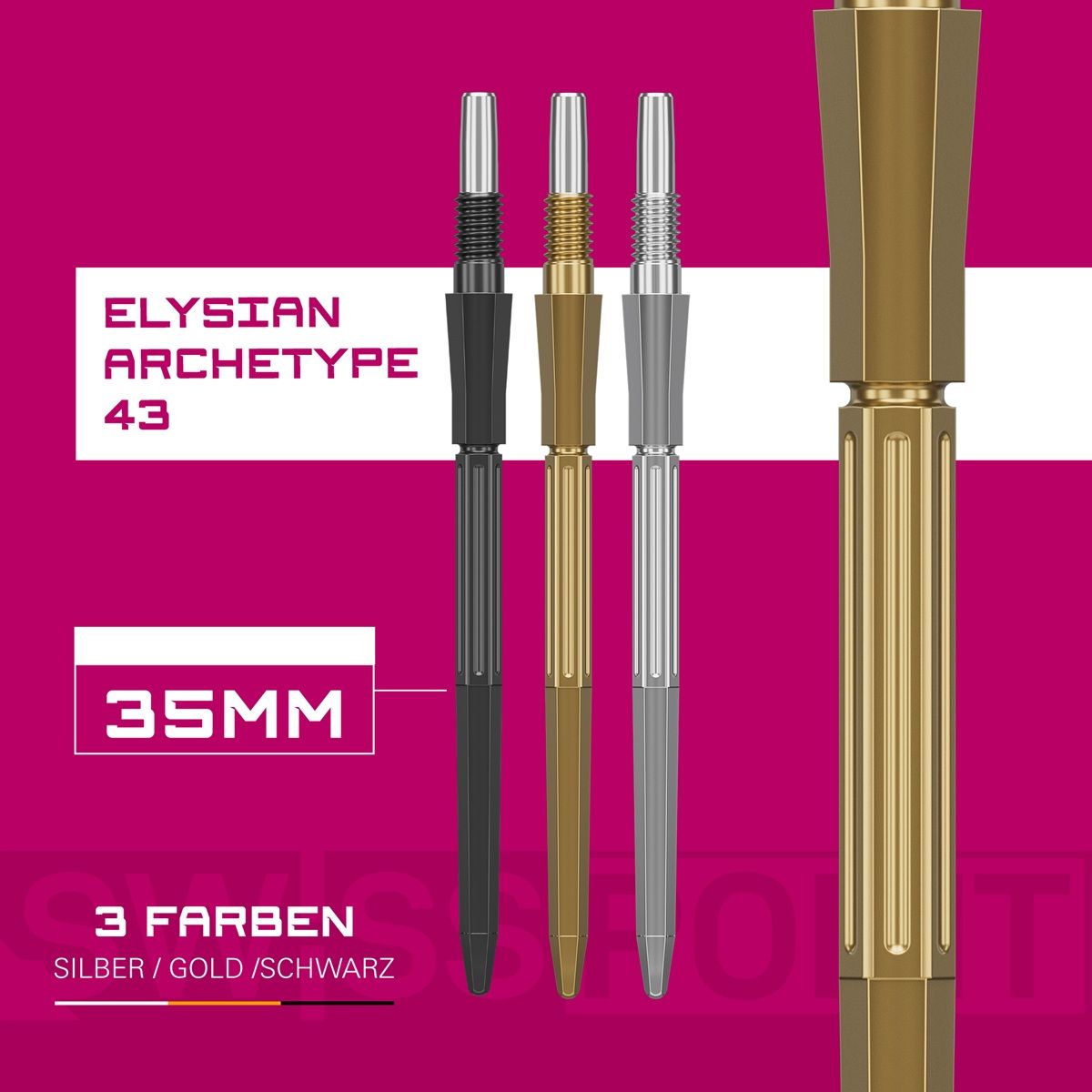 Die Kombination aus innovativer Swiss-Point-Technologie und der edlen Ästhetik der Elysian Archetype Serie bietet die perfekte Balance aus Stil, Präzision und Komfort für dein Dart-Setup.