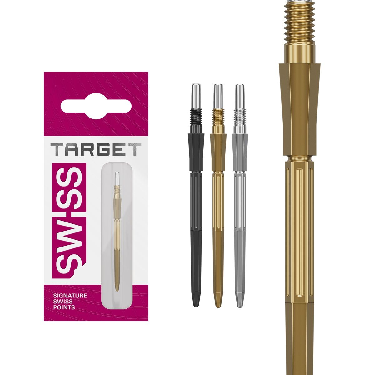 Produktinformationen "Target Swiss Point Elysian Archetype 43 30/35/42 mm Gold/Schwarz/Silber Wechselspitzen"