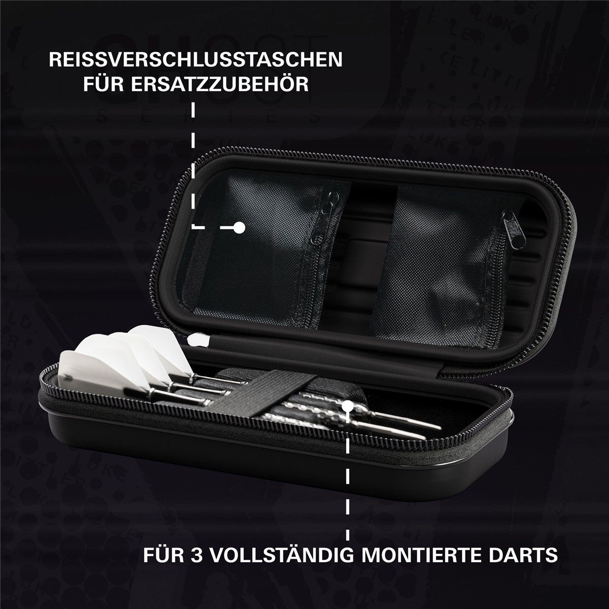 Einlage: Das Case ist mit einer Samteinalge ausgestattet für den perfekten Schutz der Darts.