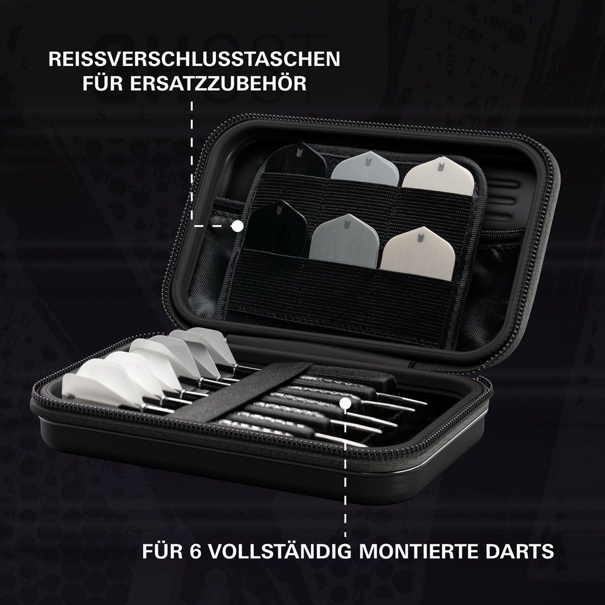 Achtung! Dart ist ein Sport für Erwachsene und kein Spielzeug. Für Kinder ist es gefährlich und darf nur unter Aufsicht gespielt werden. Außerhalb der Reichweite von kleinen Kindern lagern, Kleinteile stellen eine Erstickungsgefahr dar.